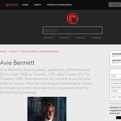 Aviebennett is ranked 1,594,929 in Canada. 'Avie Bennett - The Canadian Encyclopedia.'