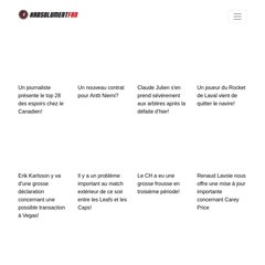 Topics: Accueil, Canadiens, Vidéos, Ailleurs Dans La Lnh, Autres Ligues, & Autres Sports.